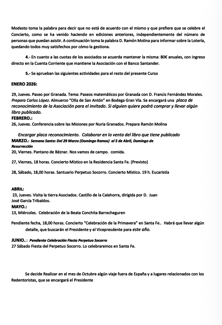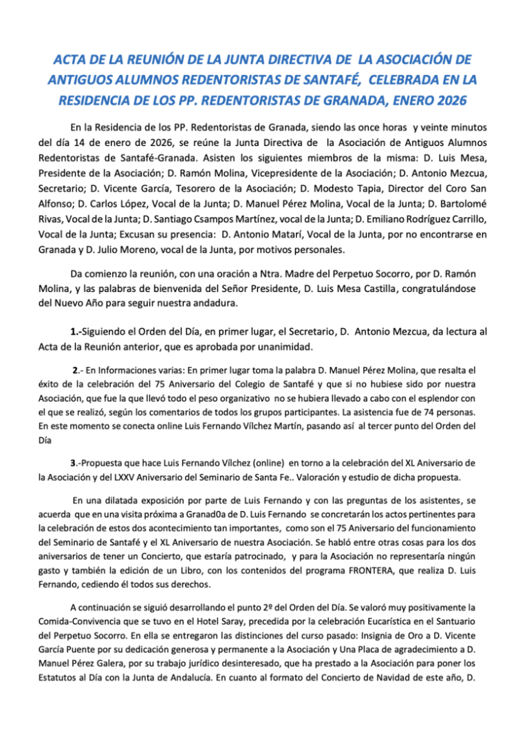 REUNIÓN JUNTA DIRECTIVA por D. Antonio Mezcua, Secretario. 14 Enero 2026