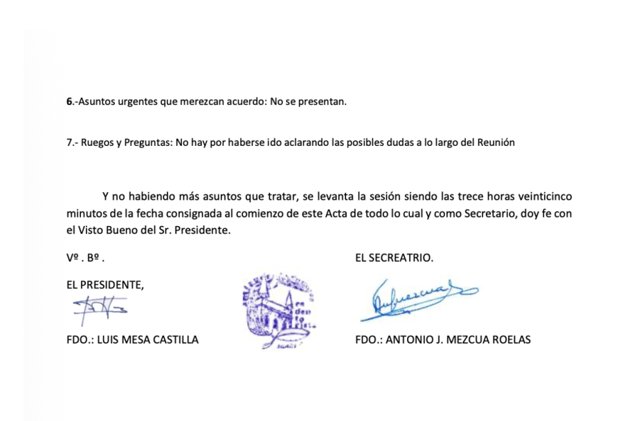 *- Lectura y aprobación si procede del Acta…. por A. Mezcua, Secretario.