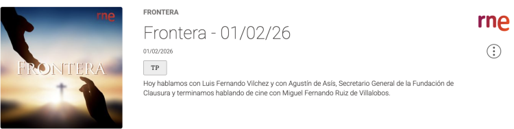 "Amigo Luis, os envío el programa Frontera emitido hoy. Espero que pueda interesar. Va de escultura, primera parte, porque, D. m, lo completaremos el próximo mes con la reflexión específica sobre la